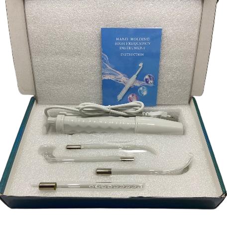Se emplean electrodos de cristal llenos de gas, que tienen por objetivo generar un aumento de calor en la piel, mayor irrigación sanguínea y por ende enriquecimiento del tejido de oxígeno. Posee importantes efectos desinfectantes, descongestivos, antiinflamatorios y estimulantes de los tejidos. El gas neón se enfoca en los signos del envejecimiento La Corriente Eléctrica promueve la curación de moléculas de oxígeno Masaje potenciador de ATP para mejorar el tono de la piel Beneficia tanto al cabello como a la piel 4 cabezales de varita para un cuidado facial completo